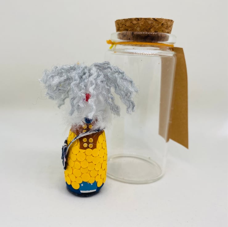 Eugenics the Sergeant of the Duvet, an ancient post of the River Climping Duck Downers. She is dressed in the traditional yellow and orange of the Ancient Order of Duck Downers.
