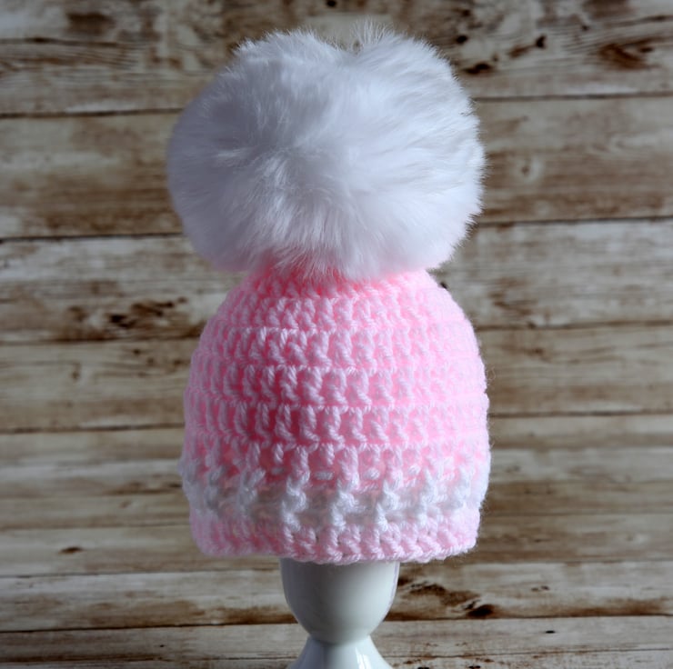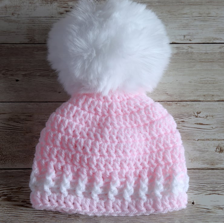 Keep your little one cozy and stylish with this adorable pink and white baby blanket and matching hat set. The soft and luxurious detachable faux fur pom pom adds a touch of charm and versatility to this must-have accessory. Whether you're looking for a sweet gift for a baby shower or simply want to keep your baby warm in style, this set is the perfect choice. Handcrafted with love, this blanket and hat set is sure to be a cherished addition to your baby's wardrobe.
