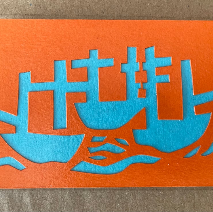 Papercut applied to a 7.5x5cm MDF rectangle and varnished for waterproofing. A magnet has been glued to the back.