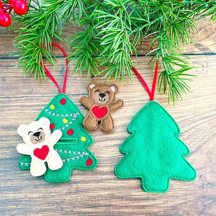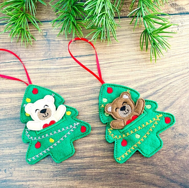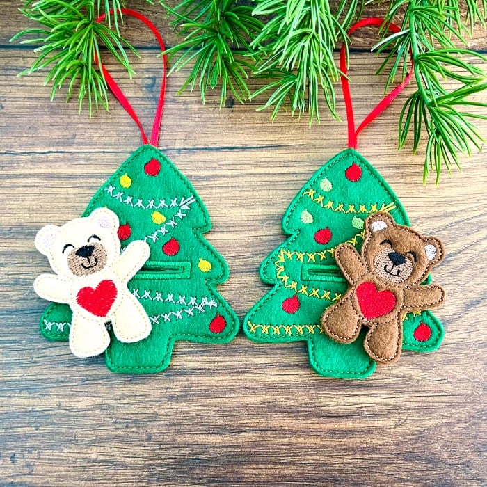 A handcrafted Christmas tree with pocket to insert a cute little bear Hanging Decorations.