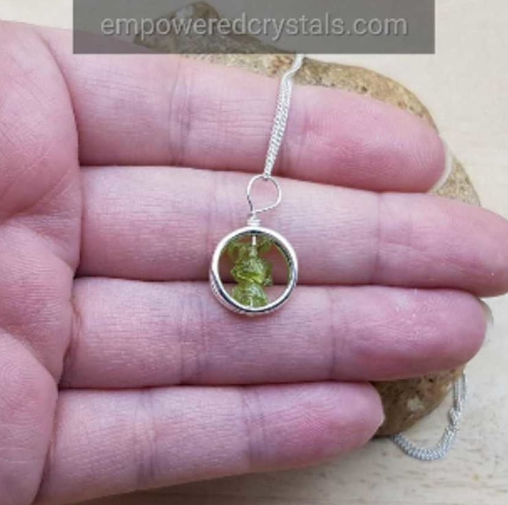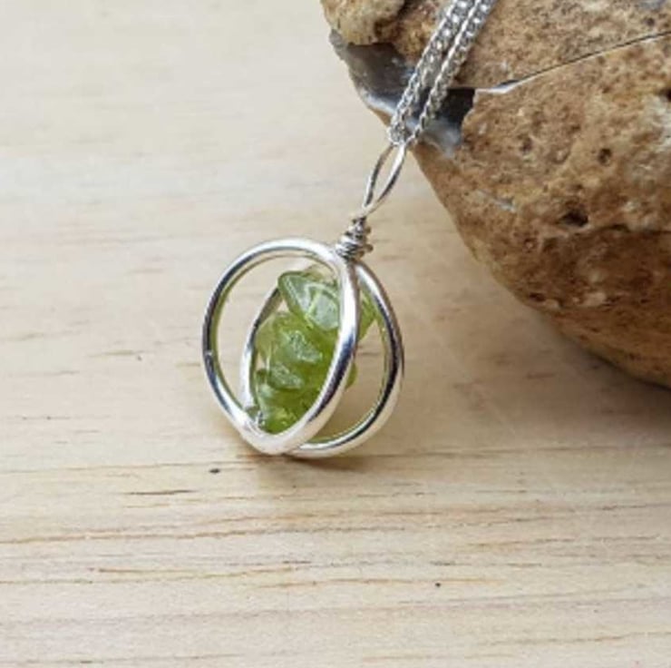 This is a women's small minimalist sterling silver peridot circle pendant necklace with a silver 3D circle frame. Perfect for a August birthstone gift. Stones will vary from the photos.