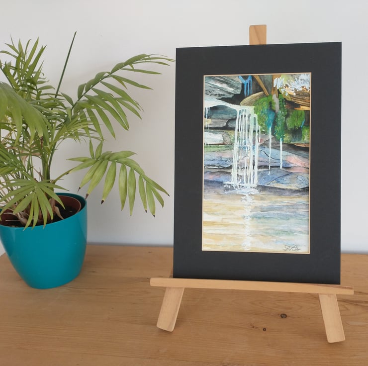 The painting, along with its black mount will fit a standard 21 x 30 cms frame. (8.”x 12”)