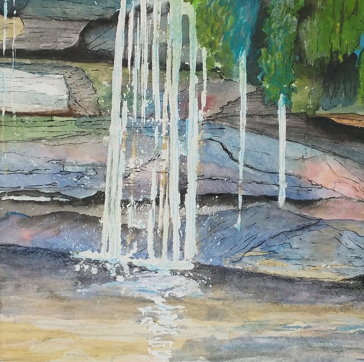I did enjoy using a range of media and colours to create “Water & Stone”.