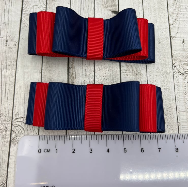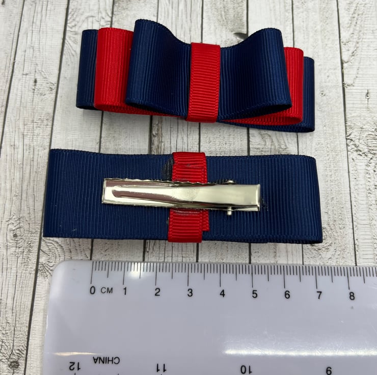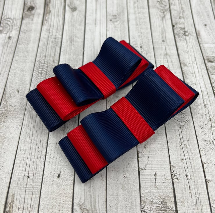 Navy and Red 3 inch Straight Bows on Clips (pair)