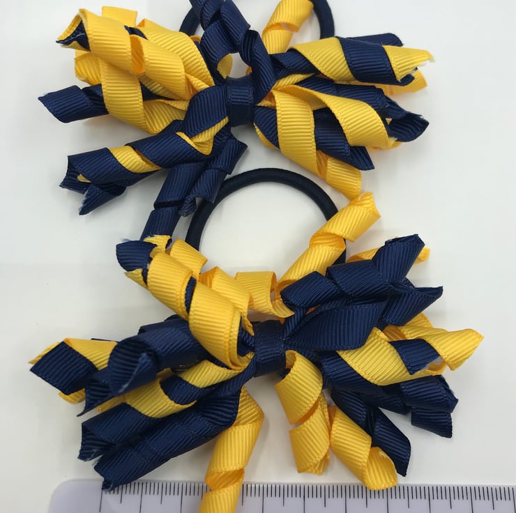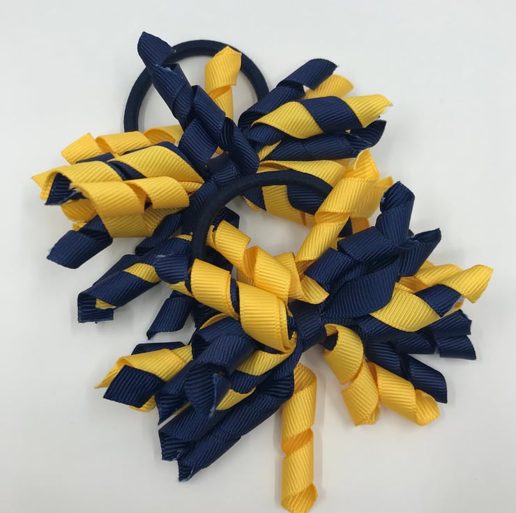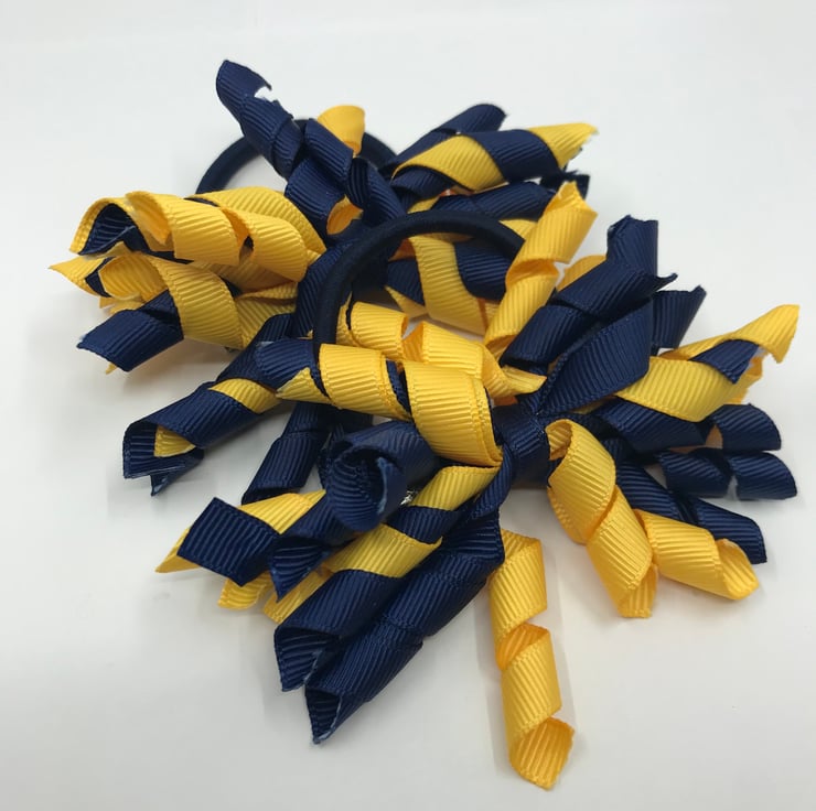 3 inch Navy and Yellow Gold Curly Corkers on Elastics (pair)