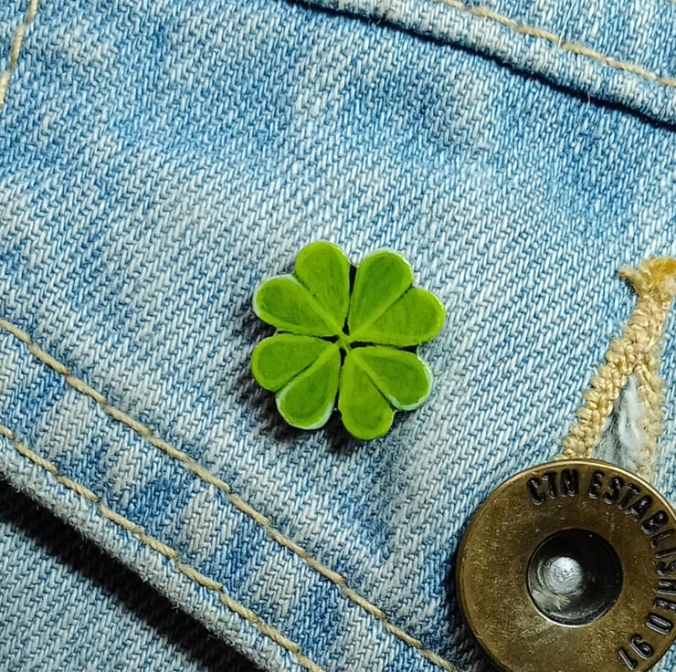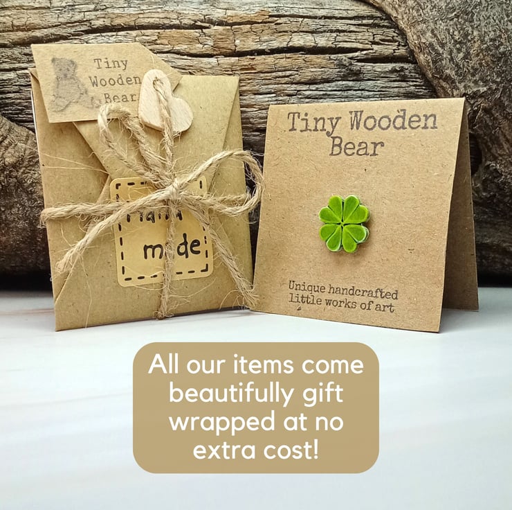 This clover pin is totally unique - designed, hand crafted and hand painted by an artist. It’s small and highly detailed - you can see the brushstrokes of the artist who has also signed it on the back. Each purchase is individually gift wrapped and beautifully presented using plastic-free packaging (100% recyclable).