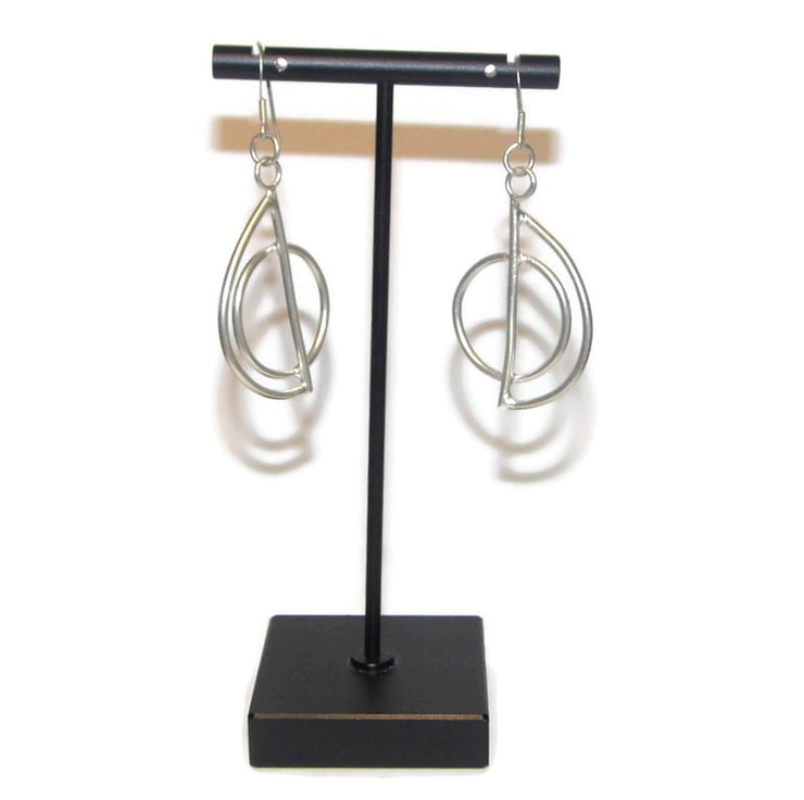 The earrings are made from 1.8mm silver wire, measure 4.5cm long and 3cm wide. They hang from sterling silver wire hooks