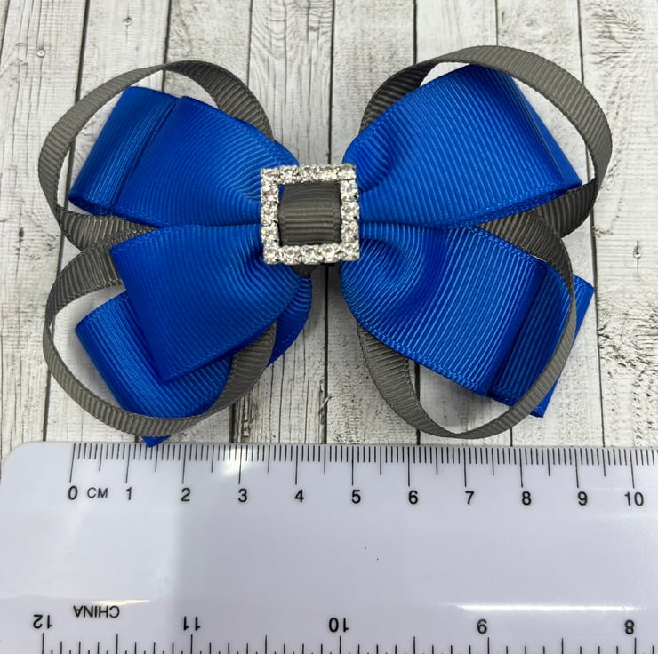 Royal Blue Double Layer Bow with Grey Loops on Clip