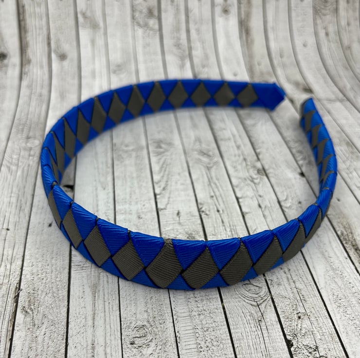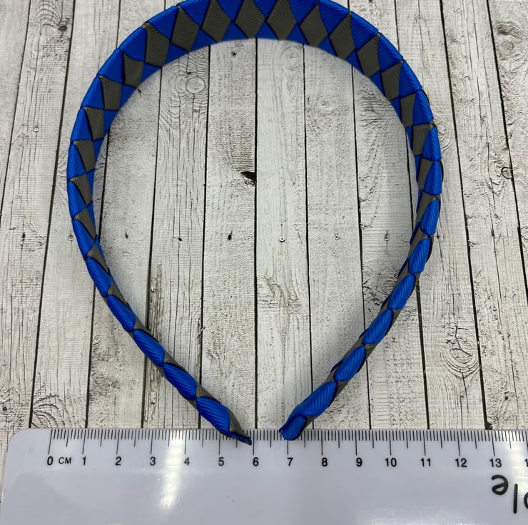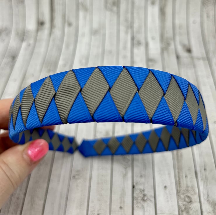 Our Diamond pleated hairbands are handmade here in our little shop. They are so cute the could compliment any school Uniform with Royal Blue and Grey in it. They are ideal for keeping those sneaky little curls from straying into your little one's eyes.