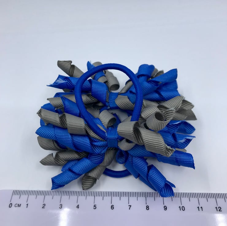 3 inch Royal Blue and Grey Curly Corkers on Elastics (pair)