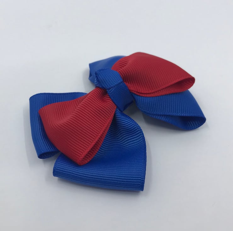 Our top knot bows are handmade here in our little shop. They are made from the best quality Grosgrain ribbon. These bows are really elegant and look extremely smart and go well with the Royal Blue and Red School Uniform.