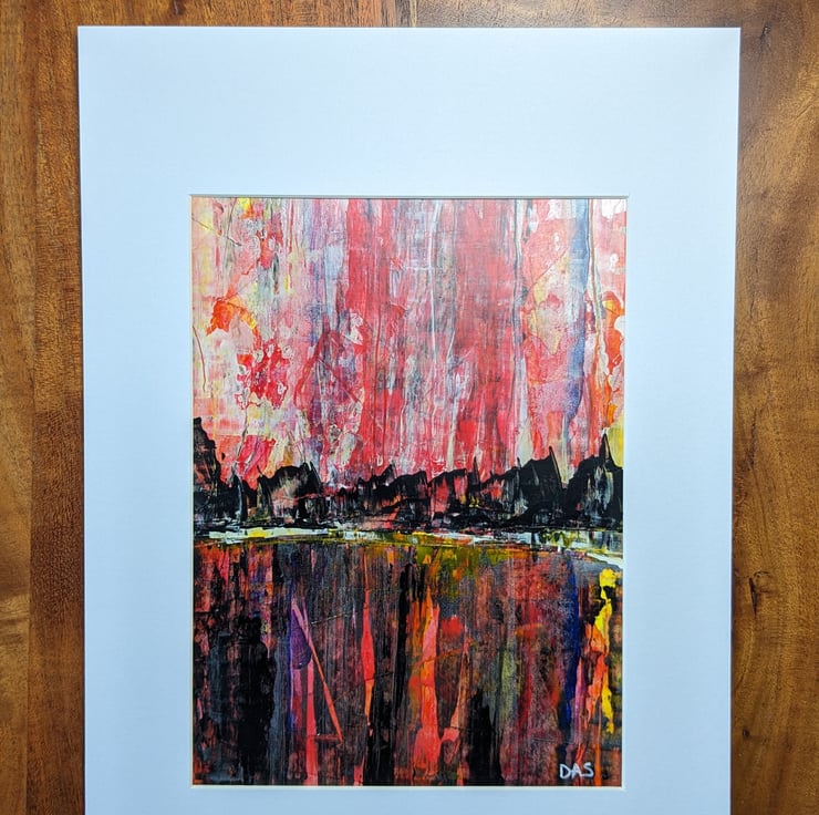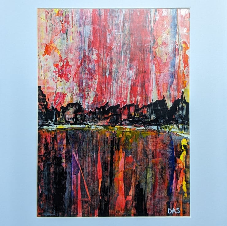 An original acrylic expressionist/abstract painting on paper. Signed and varnished. A4 frame mount and cardboard backing board included. Glued and ready to frame. Painting size is 18.5 x 13.5 cm (7.25 x 5.25 inches). Total Size including mount is A4 (29.7 x 21 cm) (11.7 x 8.3 inches).