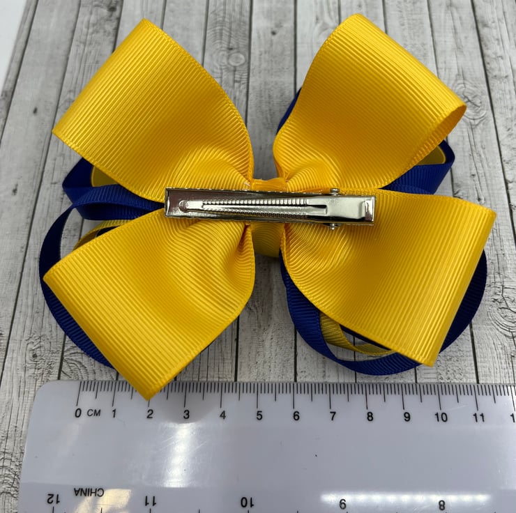 Our large loopy bows are handmade here in our little shop. They are made from the best quality Grosgrain ribbon. These bows are really elegant and look extremely smart and go well with the Cobalt blue and yellow gold School Uniform.