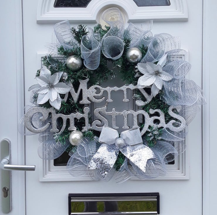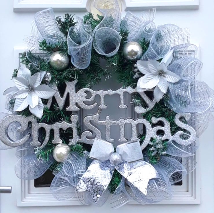 Silver Christmas Wreath, Wall Decor, Silver Door Wreath