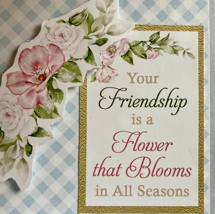 The words Your Friendship is a Flower that Blooms in all Seasons and Happy Birthday to you have been added.