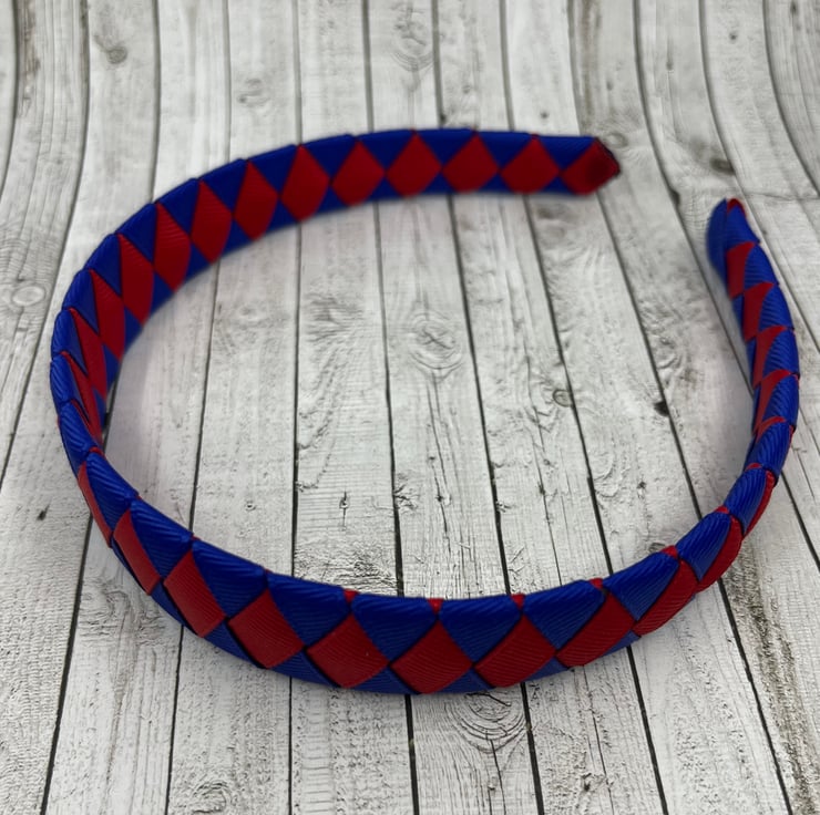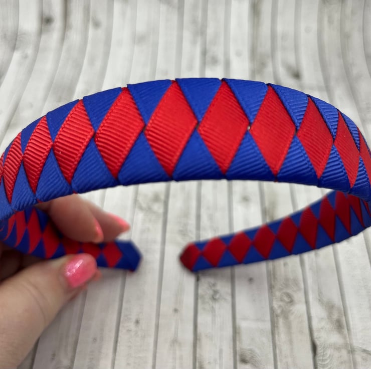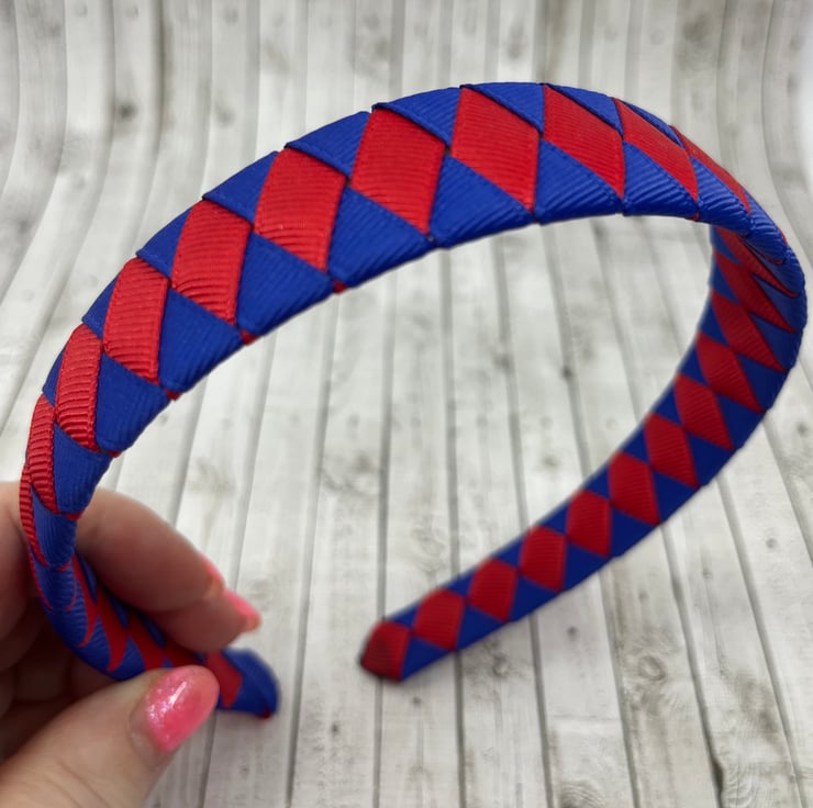 Our Diamond pleated hairbands are handmade here in our little shop. They are so cute the could compliment any school Uniform with cobalt blue and red in it. They are ideal for keeping those sneaky little curls from straying into your little one's eyes.