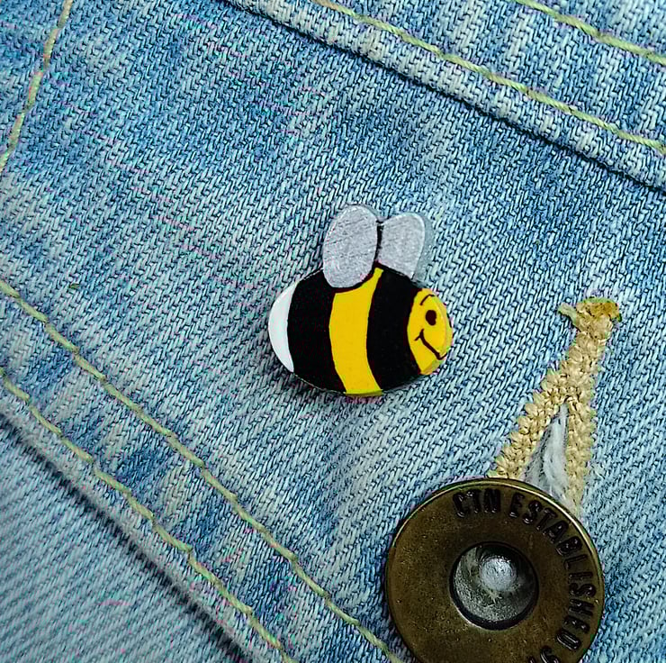 This tiny hand painted bumblebee looks so cute when decorating a jacket! Its happy face will bring a smile to your day!