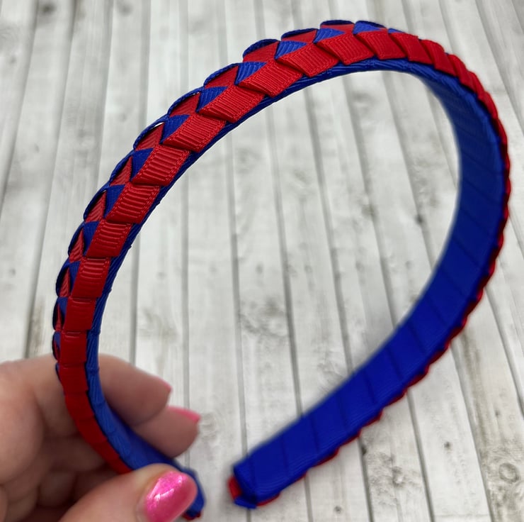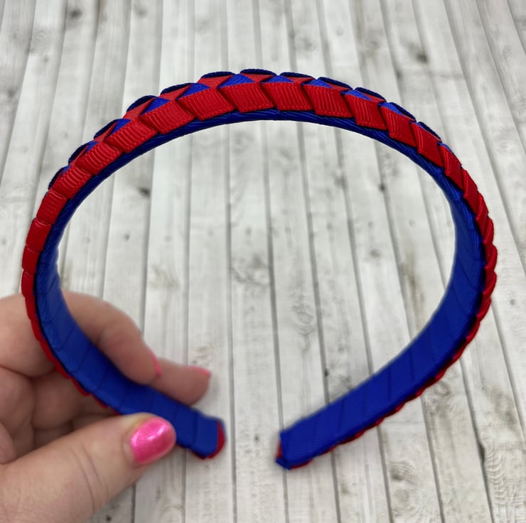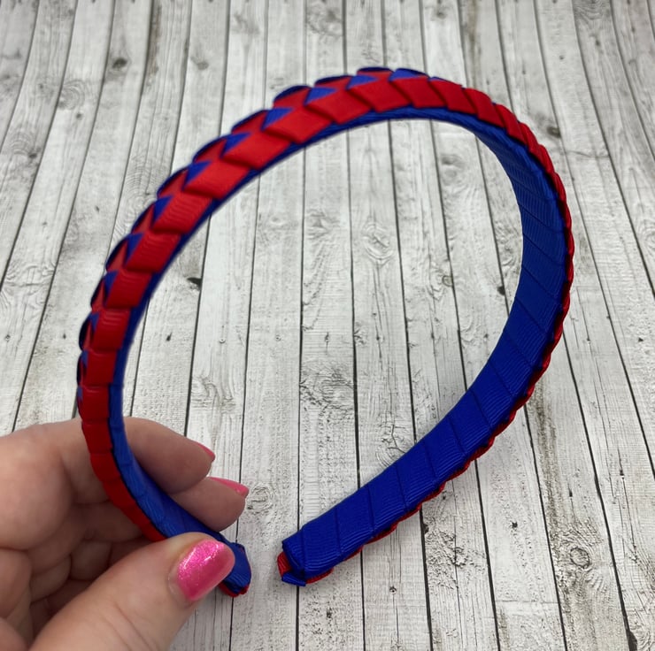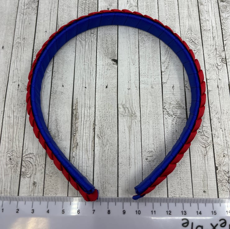 Our pleated hairbands are handmade here in our little shop. They are so cute the could compliment any school Uniform with cobalt blue and red to keep those sneaky little curls from straying into your little one's eyes.