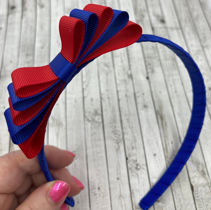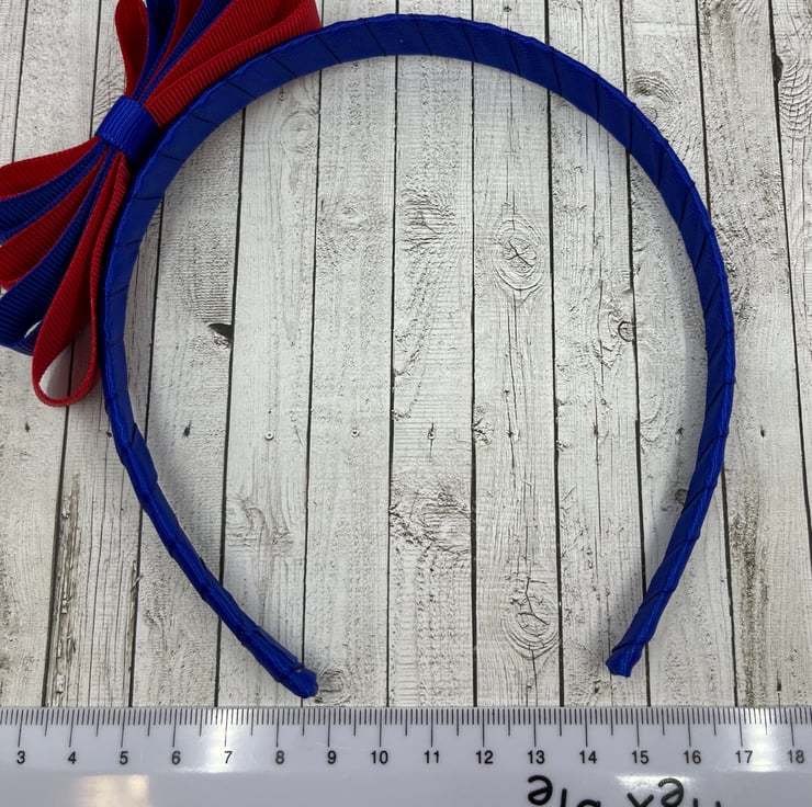 Our hairbands are handmade here in our little shop. They are so cute the could compliment any school Uniform with cobalt blue and red in it. They are ideal for keeping those sneaky little curls from straying into your little one's eyes.