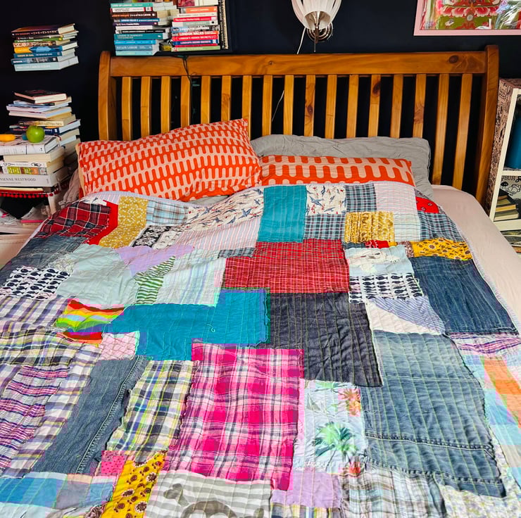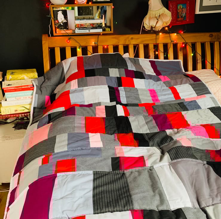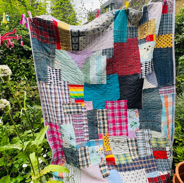 I can also make a quilt from your beloved clothes or fabrics. Memory quilts are subject to a 10% surcharge as harvesting fabric from clothes is a painstaking and lengthy process!