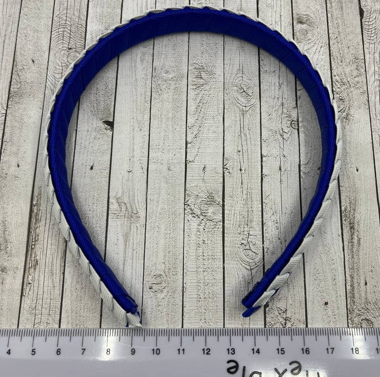 Our pleated hairbands are handmade here in our little shop. They are so cute the could compliment any school Uniform with cobalt blue and white to keep those sneaky little curls from straying into your little one's eyes.