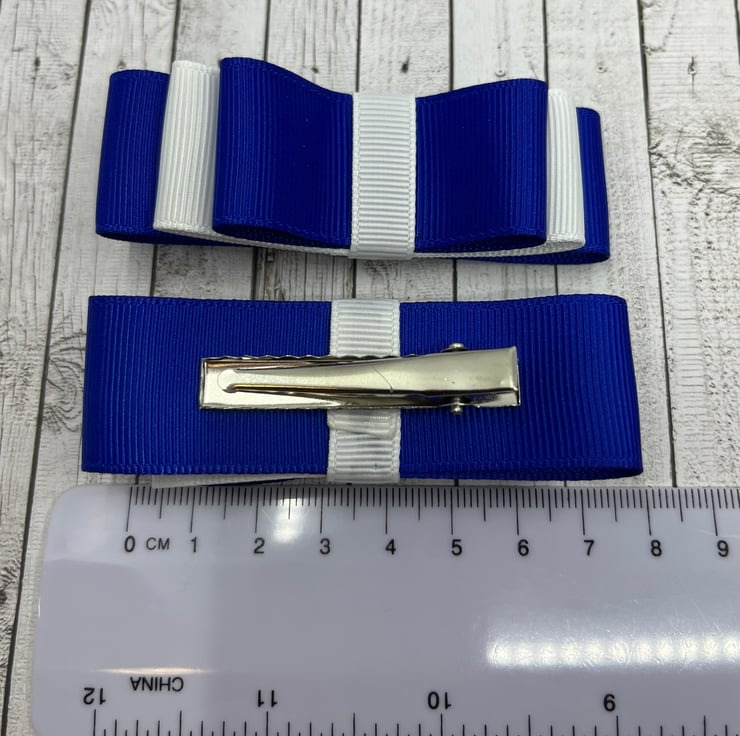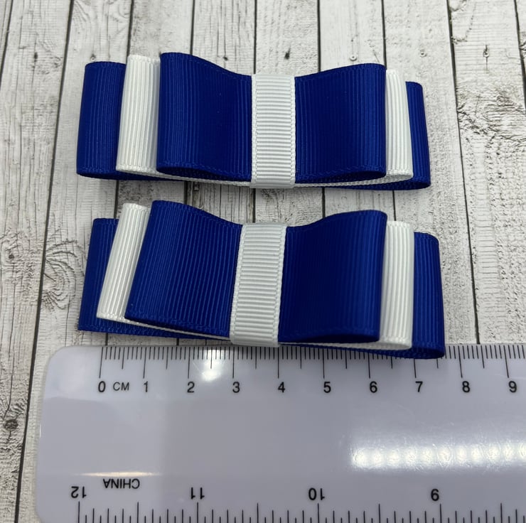 Our straight bows are handmade here in our little shop. They are made from the best quality Grosgrain ribbon. These bows are simple and classic and look extremely smart and go well with the cobalt blue and white School Uniform.