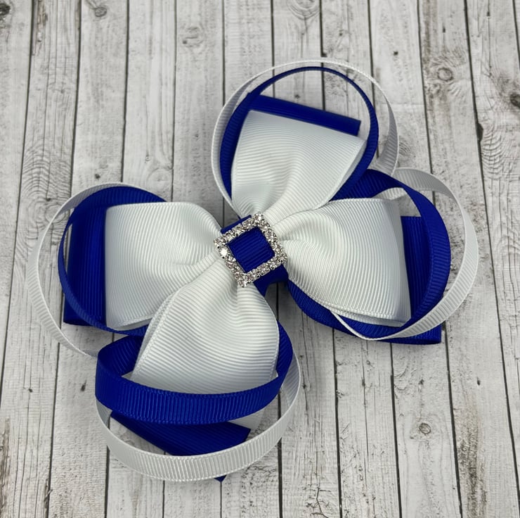 Our large loopy bows are handmade here in our little shop. They are made from the best quality Grosgrain ribbon. These bows are really elegant and look extremely smart and go well with the Cobalt blue and white School Uniform.