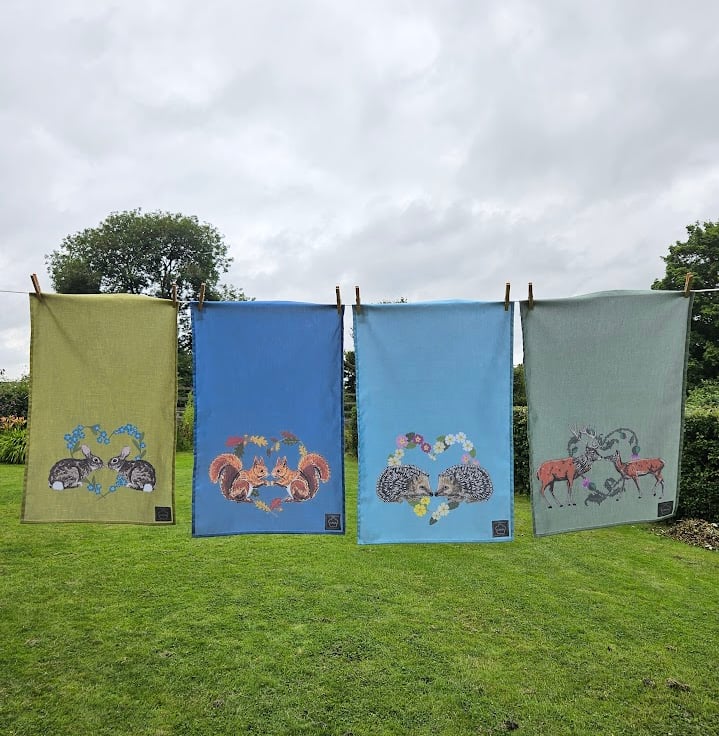 Love tea towel collection, 4 different designs, organic cotton, hanging loop