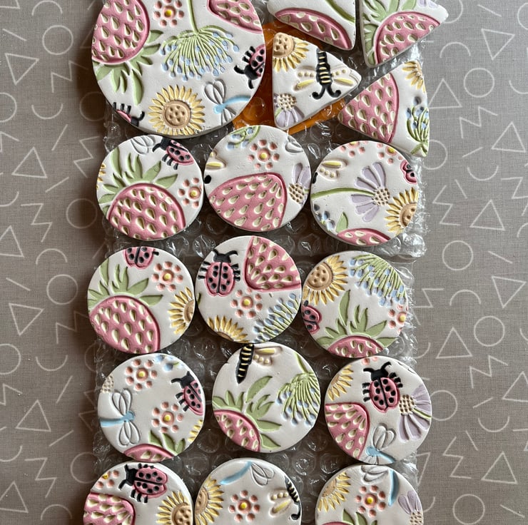 Where possible I reuse and recycle plastic bubble wrap as I find it offers the best protection for my handmade and handpainted ceramics.