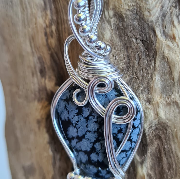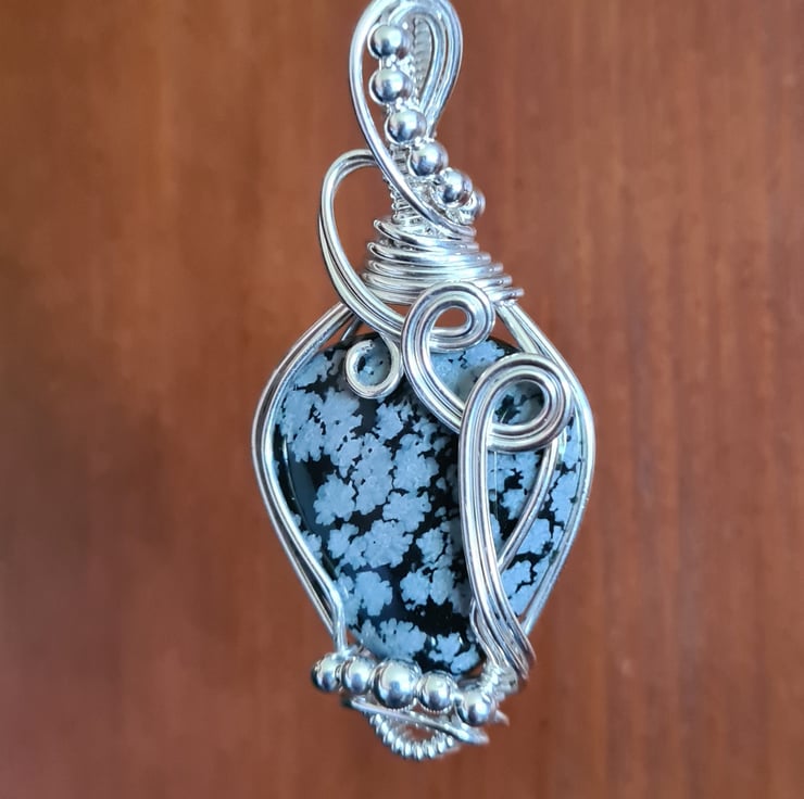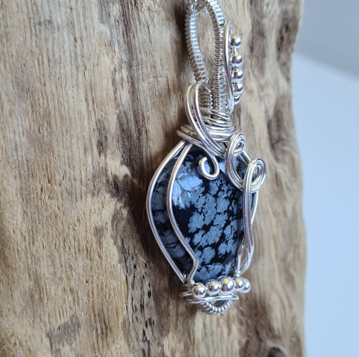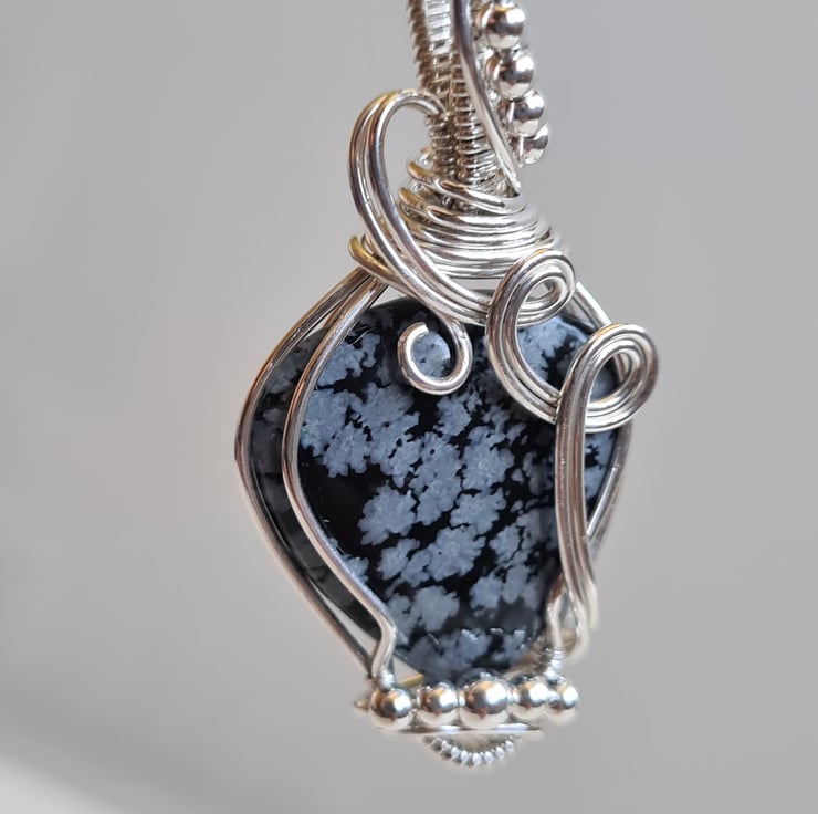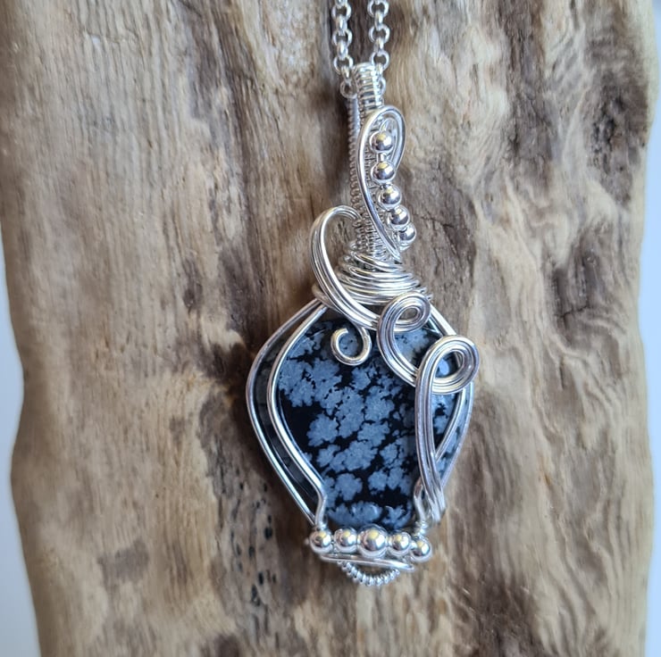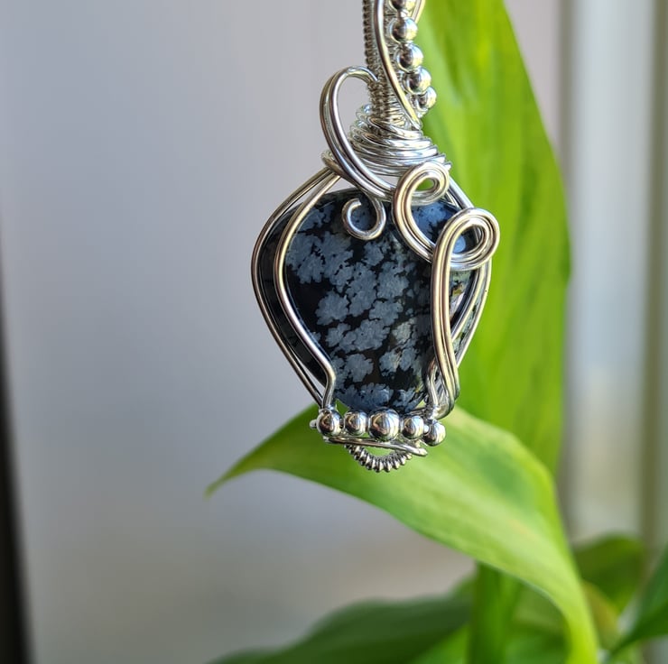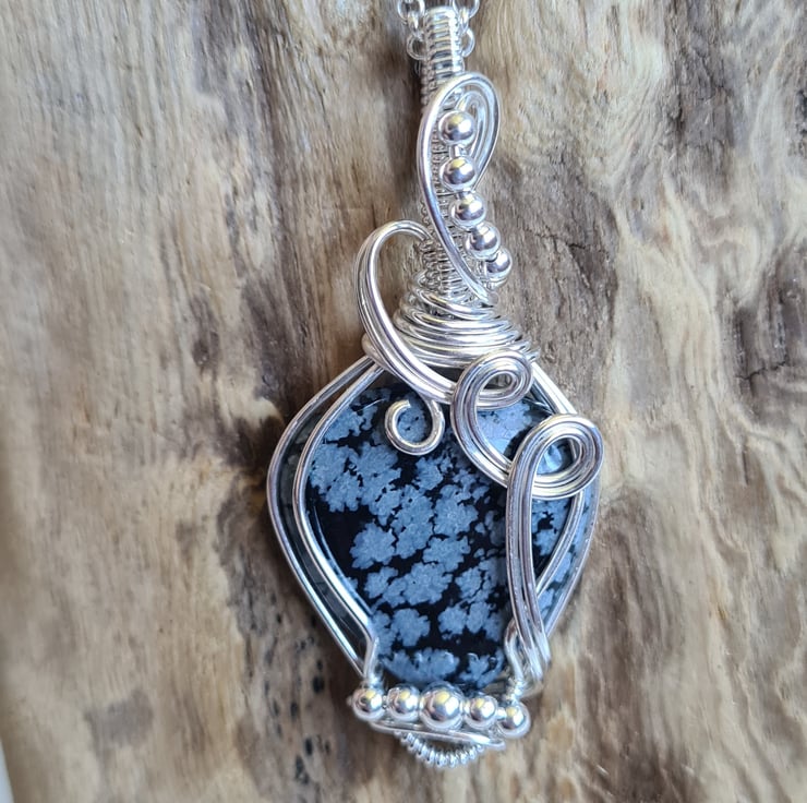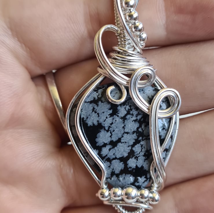 I have taken this beautiful Natural Snowflake Obsidian crystal and I have wrapped it in 925 Silver and finished with little Sterling Silver beads to create this lovely elegant design. A beautiful and totally unique necklace making an amazing gift sure to wow.