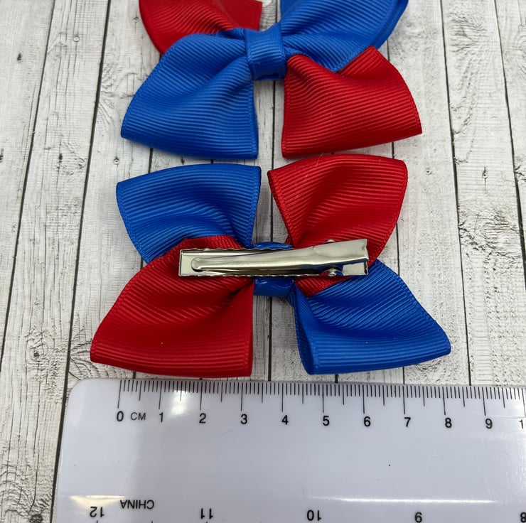 Our square double bows are handmade here in our little shop. They are made from the best quality Grosgrain ribbon. These bows are simple and classic and look extremely smart and go well with the royal blue and red School Uniform.