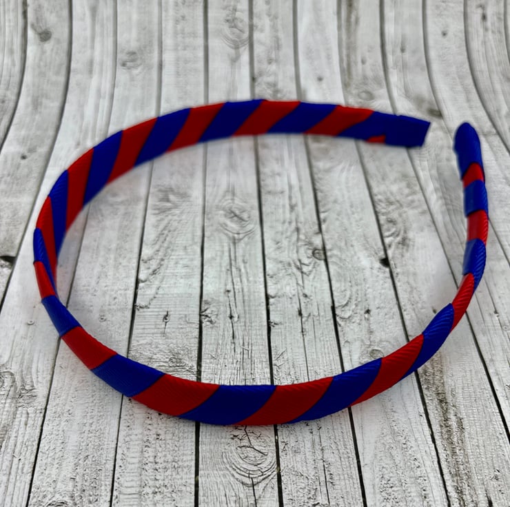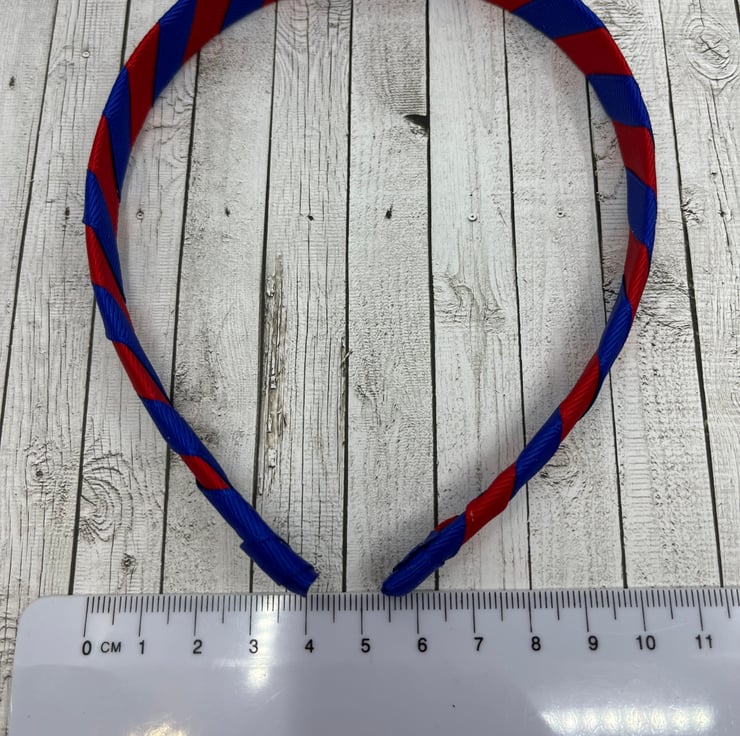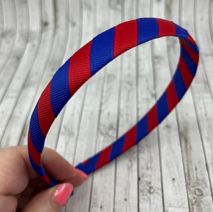 Our cobalt blue and red Ribbon 1.8cm striped head band is made with excellent quality grosgrain ribbon. It will match beautifully with your little one's school Uniform and keep those little stray curls out of your little one's eyes.