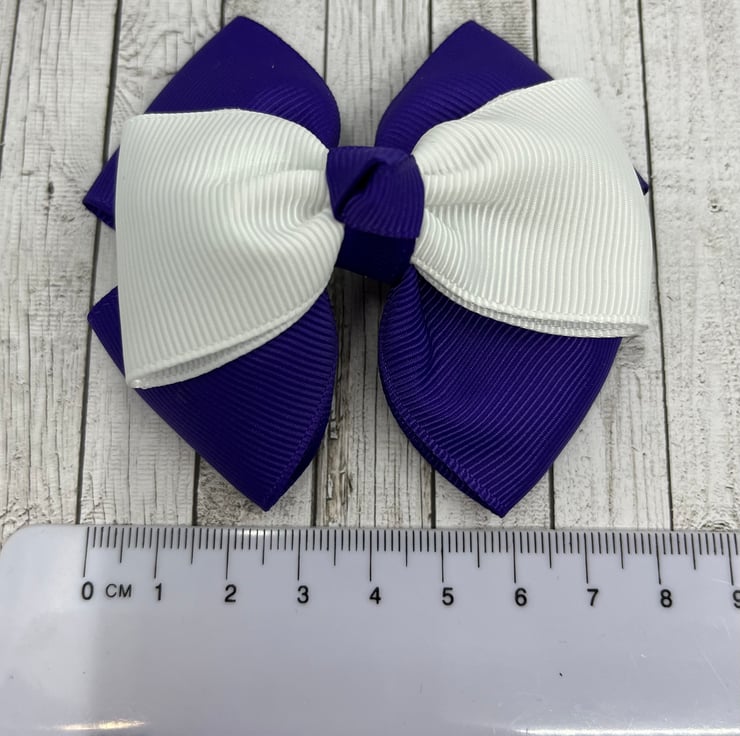 Our top knot bows are handmade here in our little shop. They are made from the best quality Grosgrain ribbon. These bows are really elegant and look extremely smart and go well with the purple and white School Uniform.