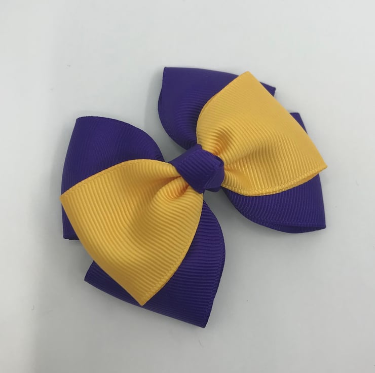 Our top knot bows are handmade here in our little shop. They are made from the best quality Grosgrain ribbon. These bows are really elegant and look extremely smart and go well with the purple and yellow gold School Uniform.