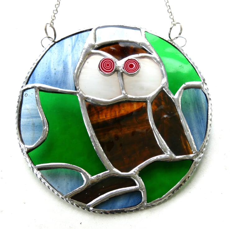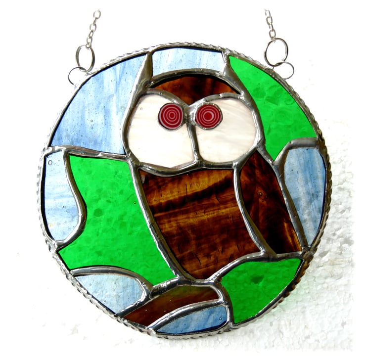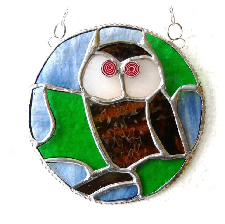 The suncatcher hangs from a chain which is securely attached to the top of the Owl Ring. The ring is framed with twisted wire for neatness and to give it strength and is 13cm in diameter.