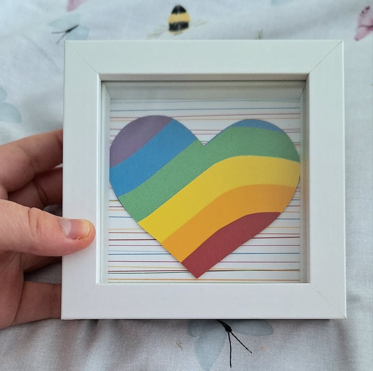 Pride Rainbow Heart 3D Shadow Box Frame 10x10cm Hand Crafted Home Decor
