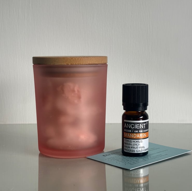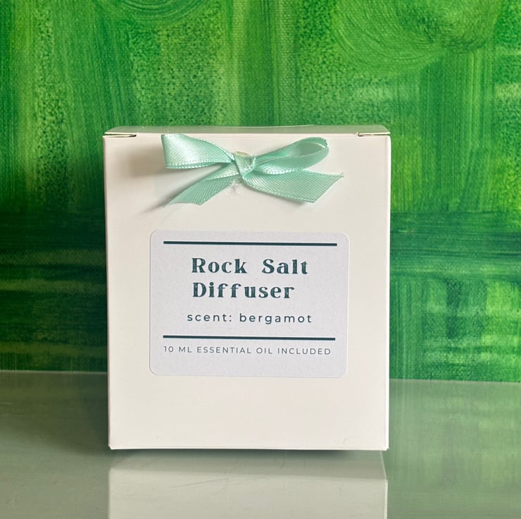 This diffuser includes rock salt chunks in a pretty pink glass jar with a wooden lid. It comes with 10ml bottle of your chosen essential oil and instructions for use, all packaged in a ribboned box - perfect as a gift.