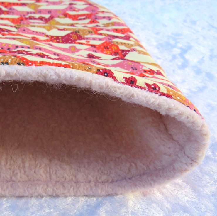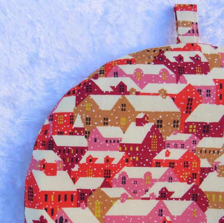 The design is ''Snowy Rooftops'' in the coral colourway.