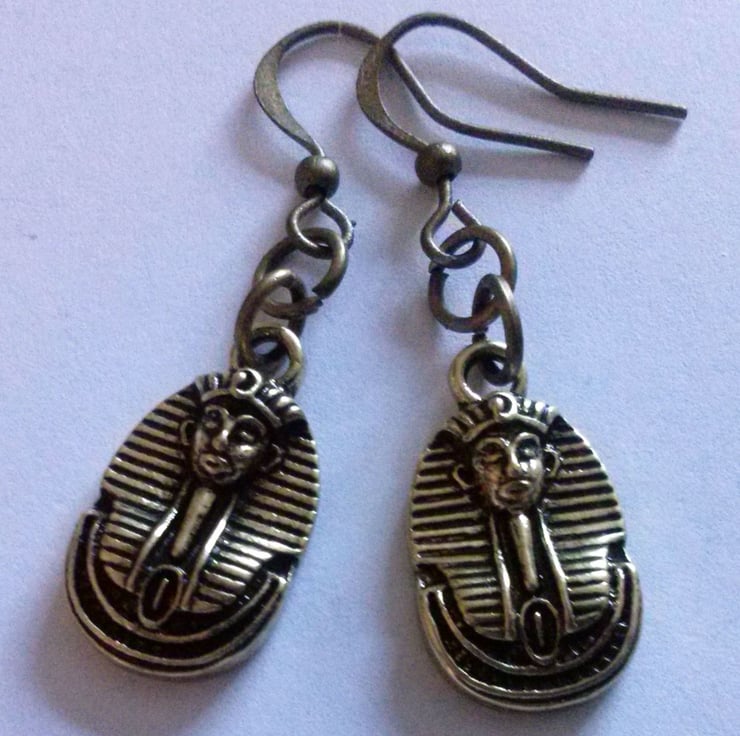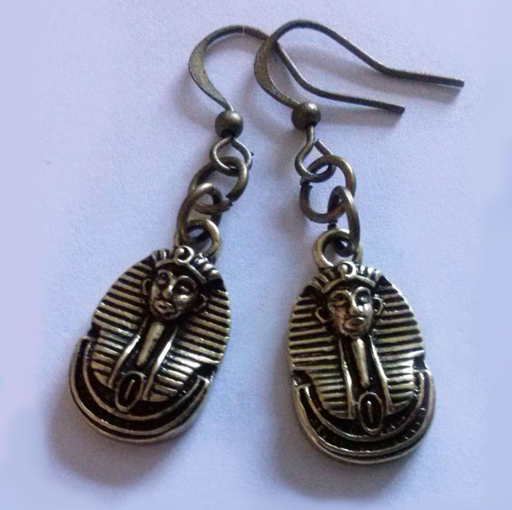 These amazing earrings have bronze Tutankhamun charms hanging on bronze hooks.