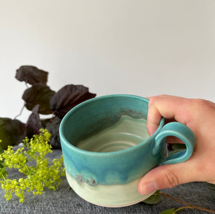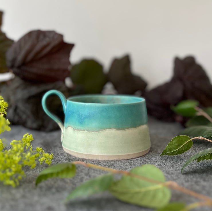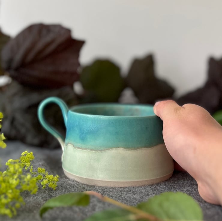 A handmade pottery cup perfect for your first cup of tea of the day.