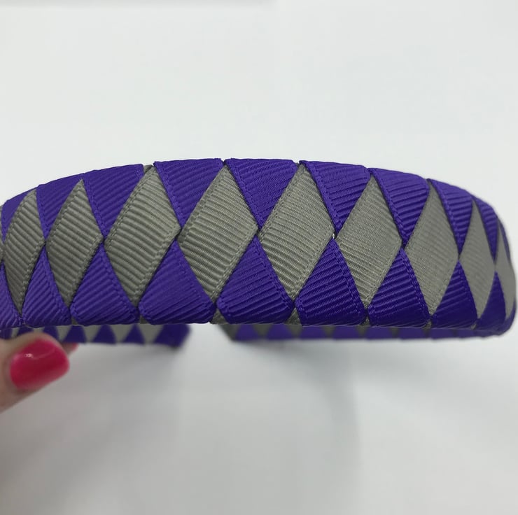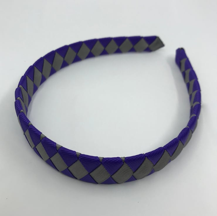 Our Diamond pleated hairbands are handmade here in our little shop. They are so cute the could compliment any school Uniform with purple and grey in it. They are ideal for keeping those sneaky little curls from straying into your little one's eyes.
