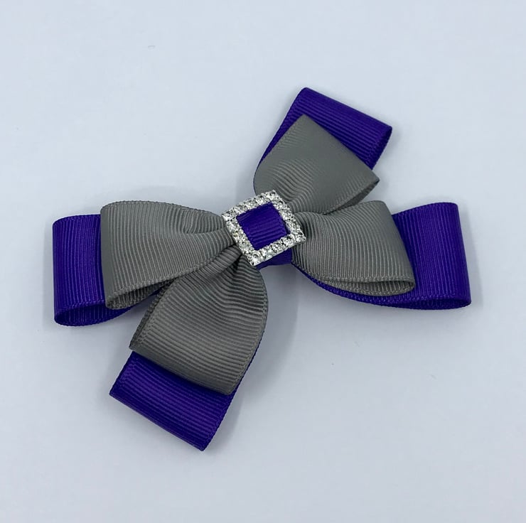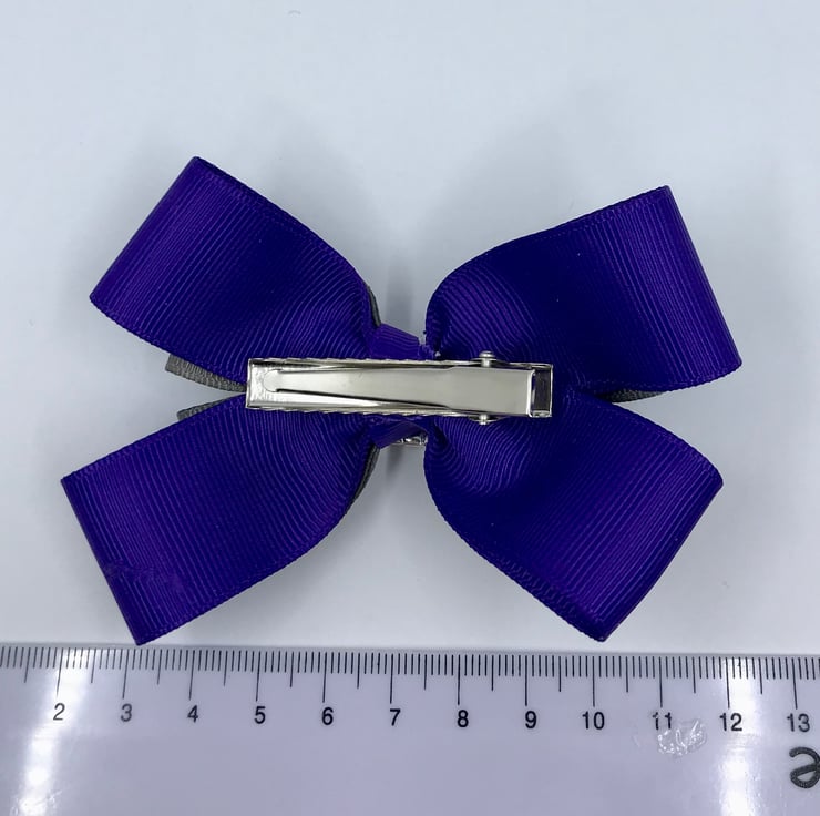 Our double bows are handmade here in our little shop. They are made from the best quality Grosgrain ribbon. These bows are really elegant and look extremely smart and go well with the purple and grey School Uniform.