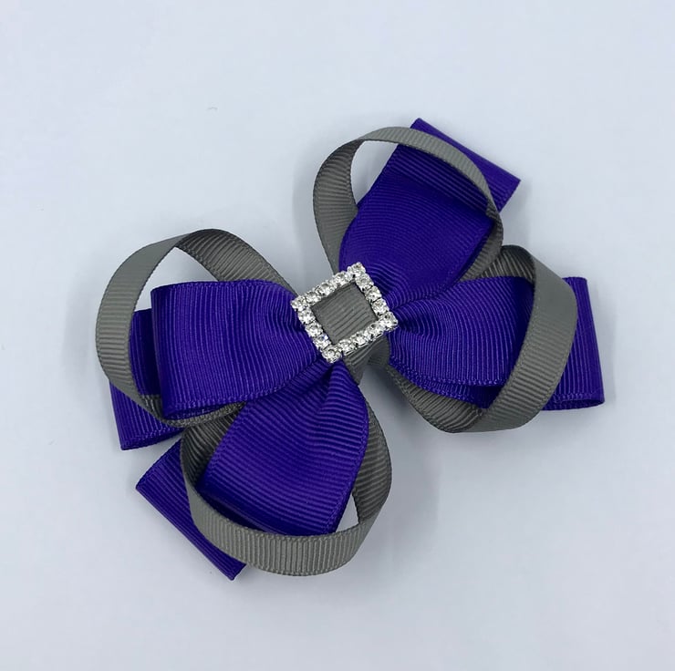 Our double bows are handmade here in our little shop. They are made from the best quality Grosgrain ribbon. These bows are really elegant and look extremely smart and go well with the purple and grey School Uniform.