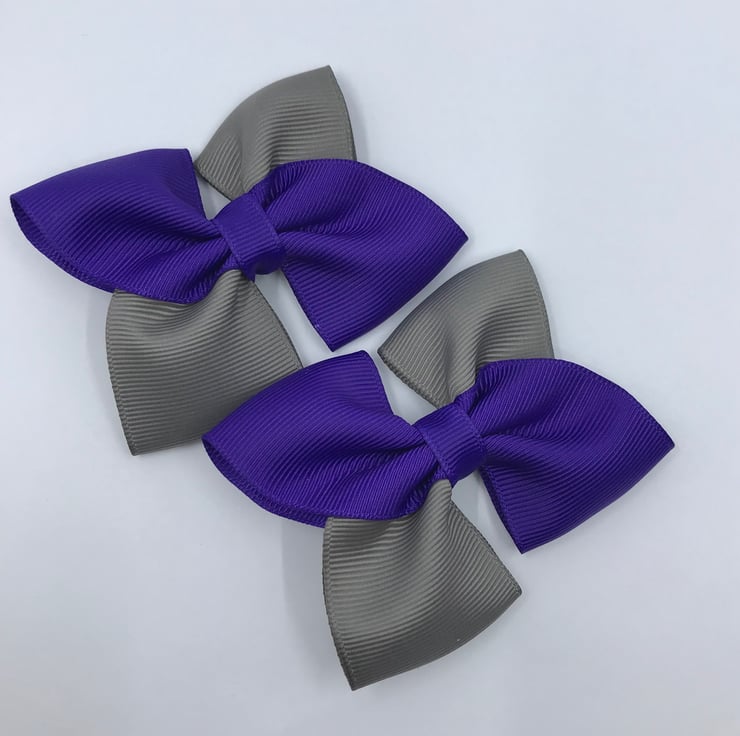 Our square double bows are handmade here in our little shop. They are made from the best quality Grosgrain ribbon. These bows are simple and classic and look extremely smart and go well with the purple and grey School Uniform.