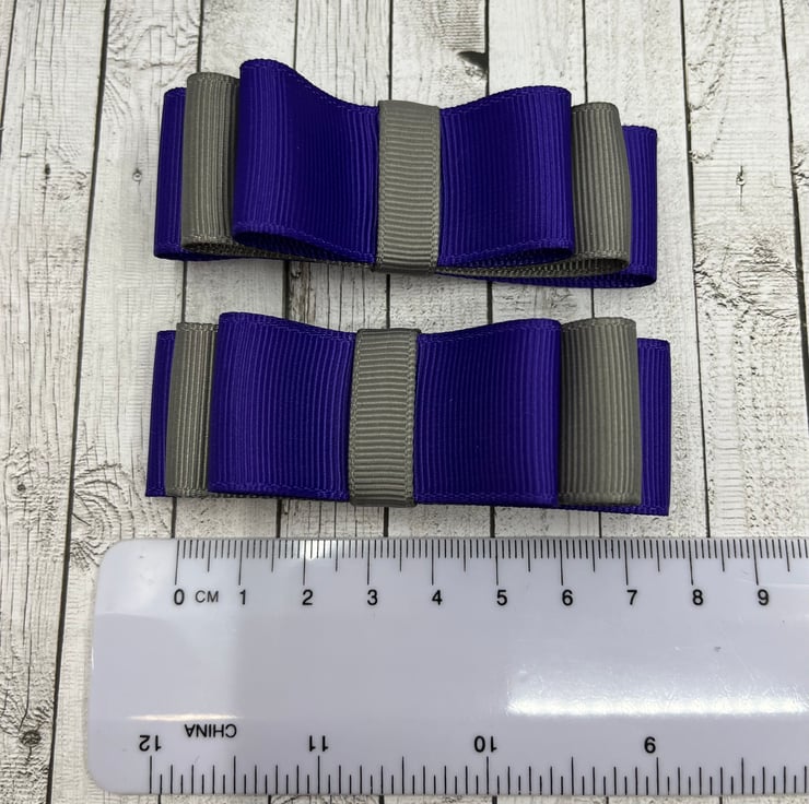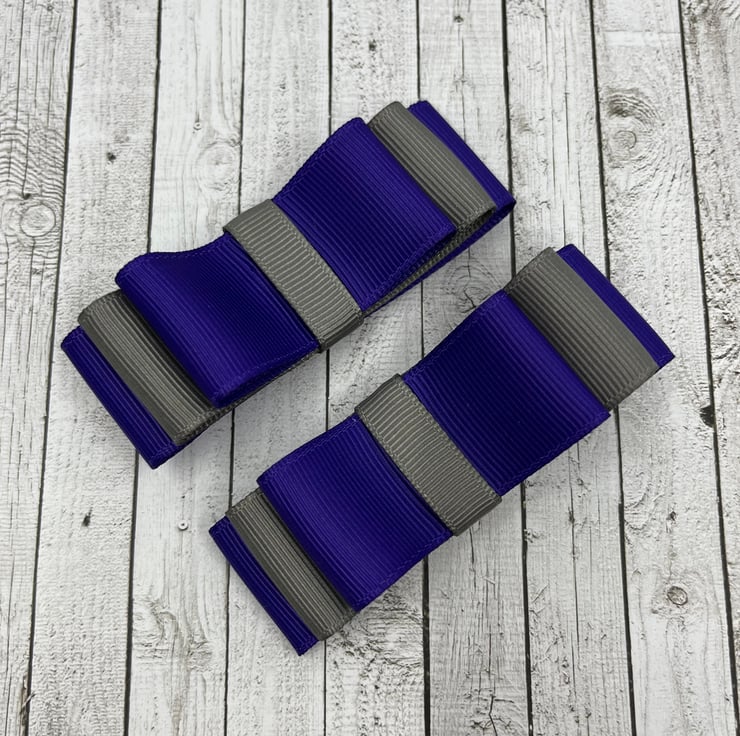 Our straight bows are handmade here in our little shop. They are made from the best quality Grosgrain ribbon. These bows are simple and classic and look extremely smart and go well with the purple and grey School Uniform.