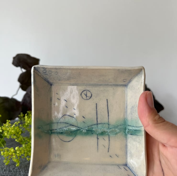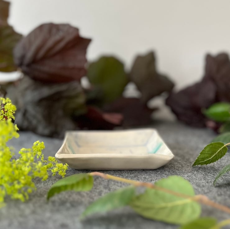 A handmade pottery square dish perfect for holding your jewellery pieces or a couple of biscuits to go with your afternoon cuppa.