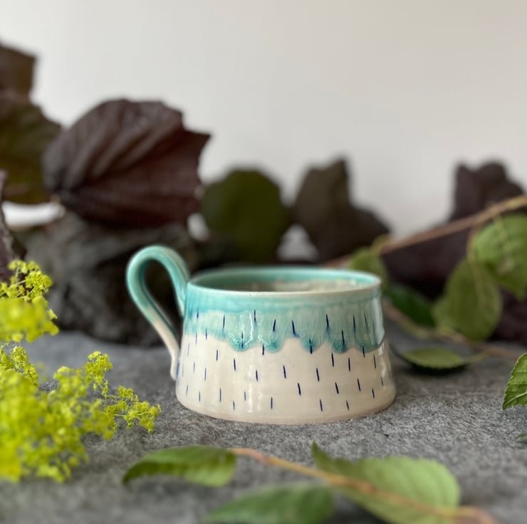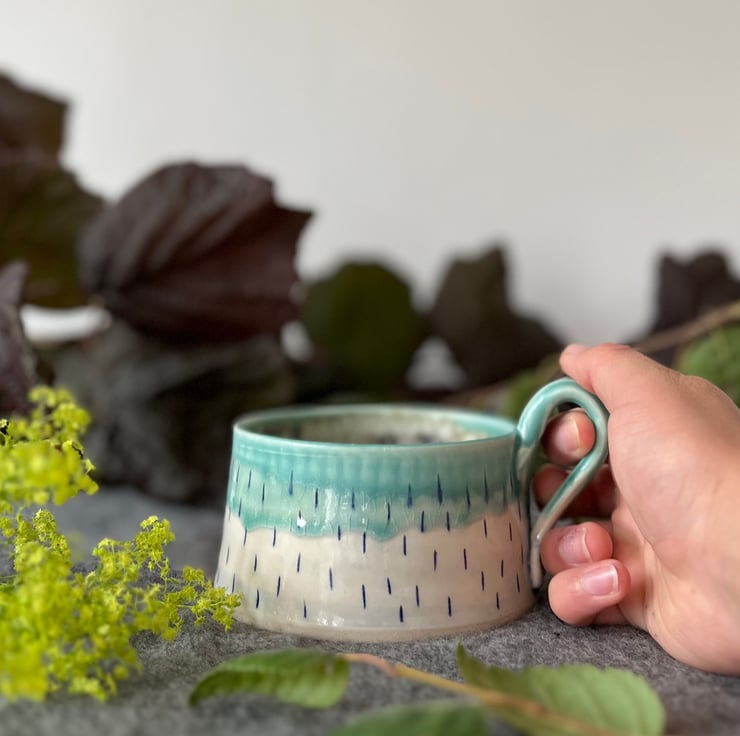 A handmade pottery cup perfect for your first cup of tea of the day.
