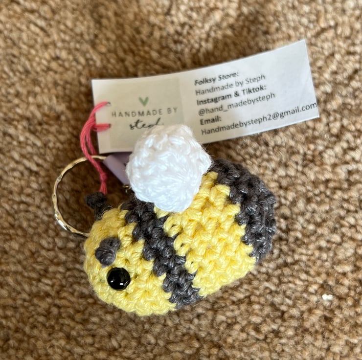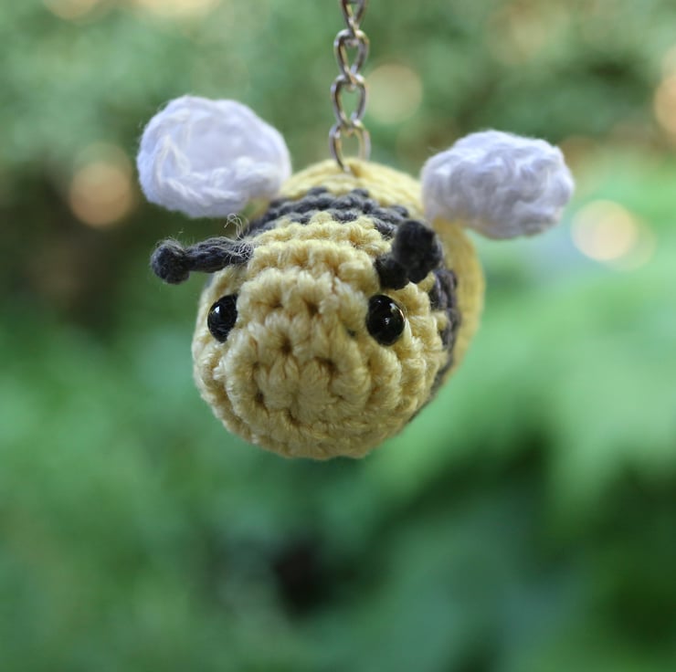 Handmade crochet Honey Bee keyring, with cotton yarn and polyester filling.