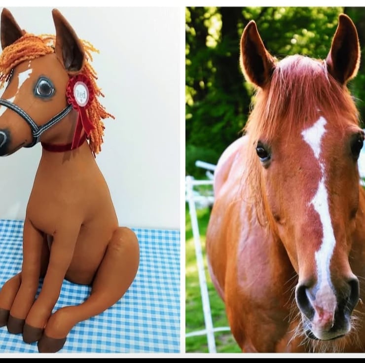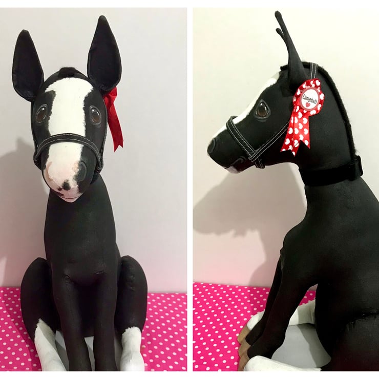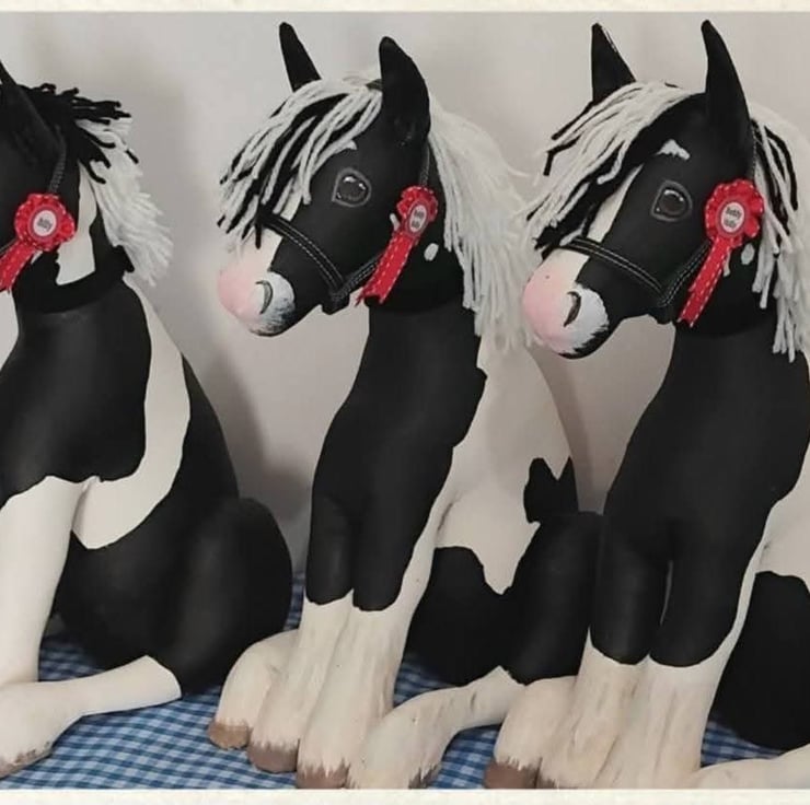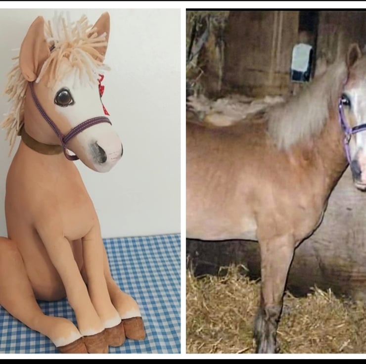 Pony Keepsakes are made from heavy duty cotton calico cut from my own hand draw pattern. They are then filled with soft hypoallergenic fibre stuffing and a lined kiln dried sand bag.