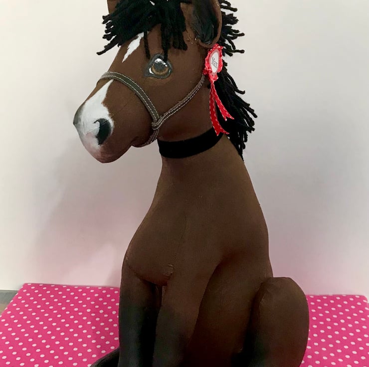 They are then finished with a faux leather base, for extra protection, a handmade leather head collar (faux leather also available) and wool mane and tail, with a beautiful Berisfords velvet bow.
